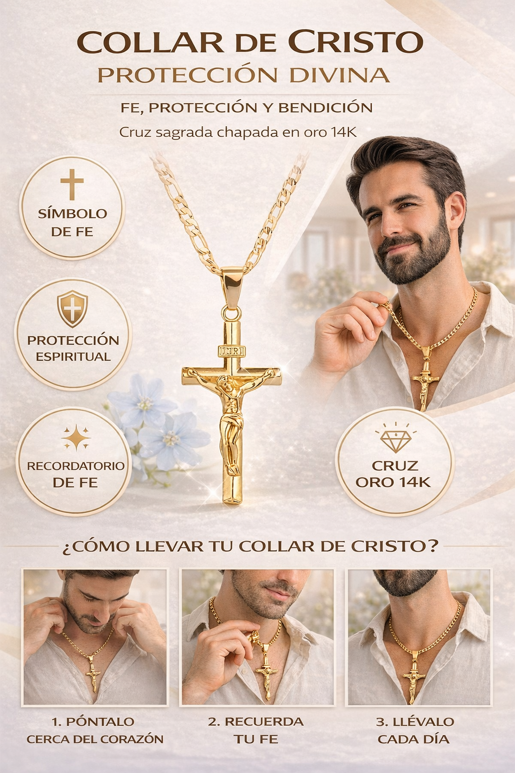 COLLAR BENDECIDO DE JESÚS - CHAPADO EN ORO 14K