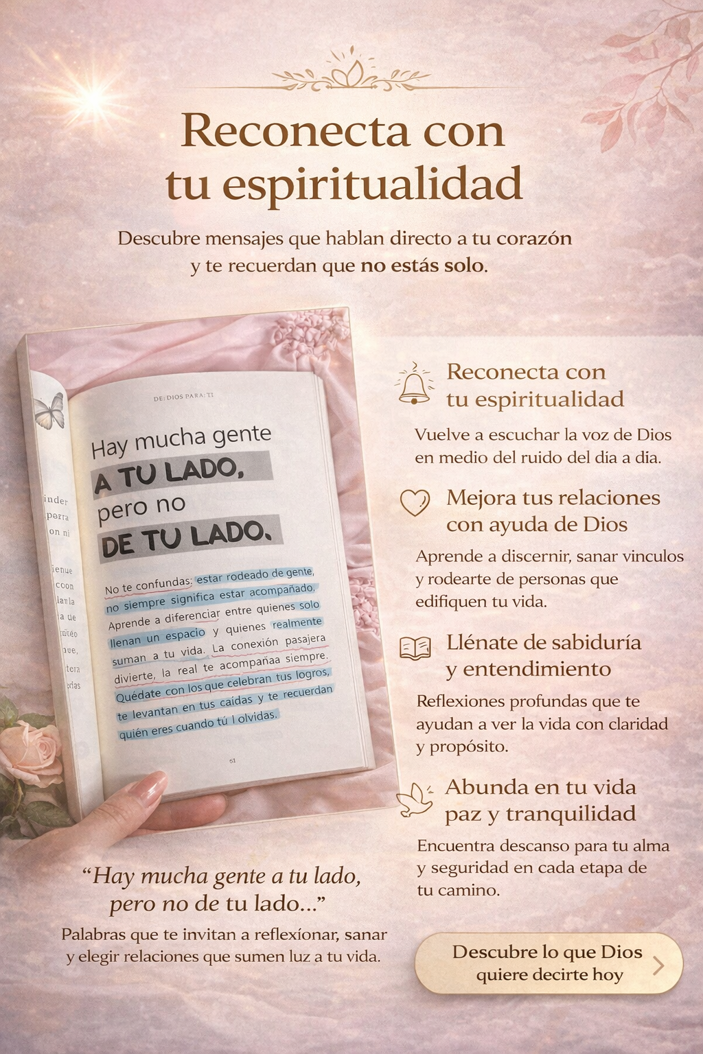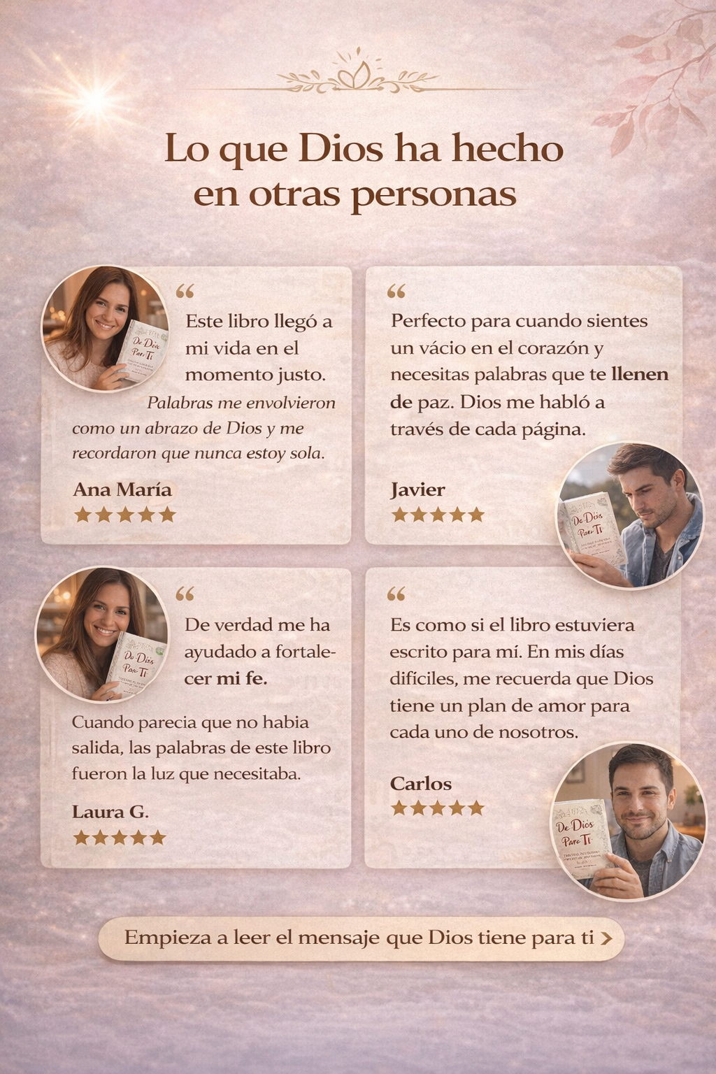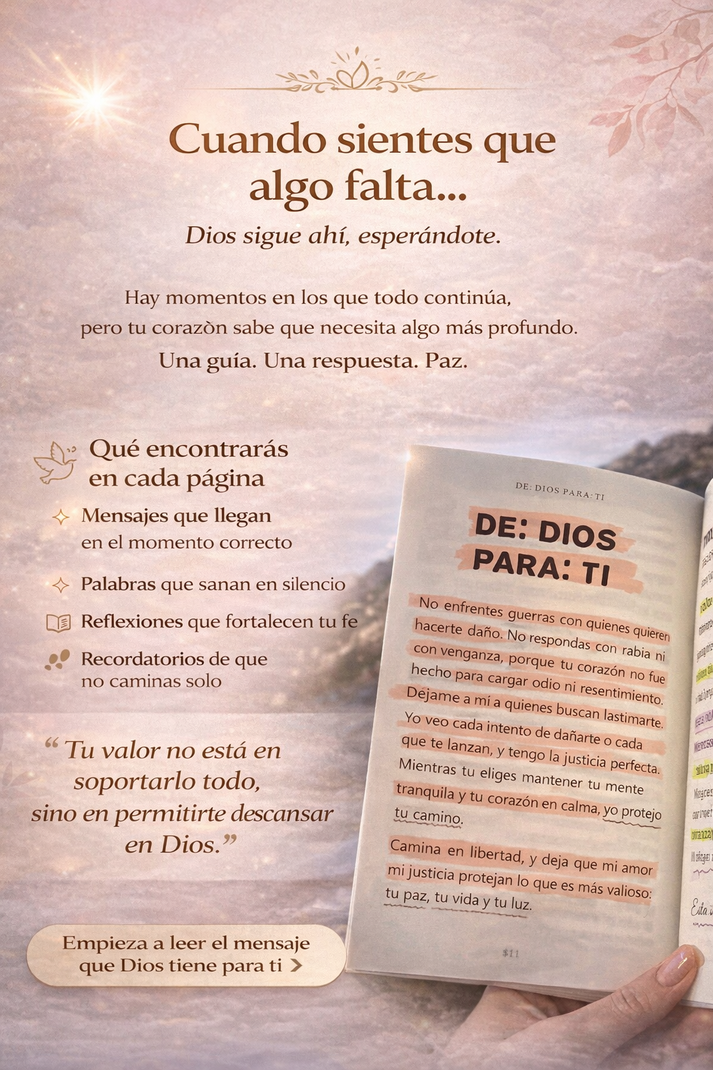 Es increíble cómo siempre abro el libro y encuentro justo lo que necesitaba leer ese día. Me ayudó a ordenar mis pensamientos y a fortalecer mi fe.