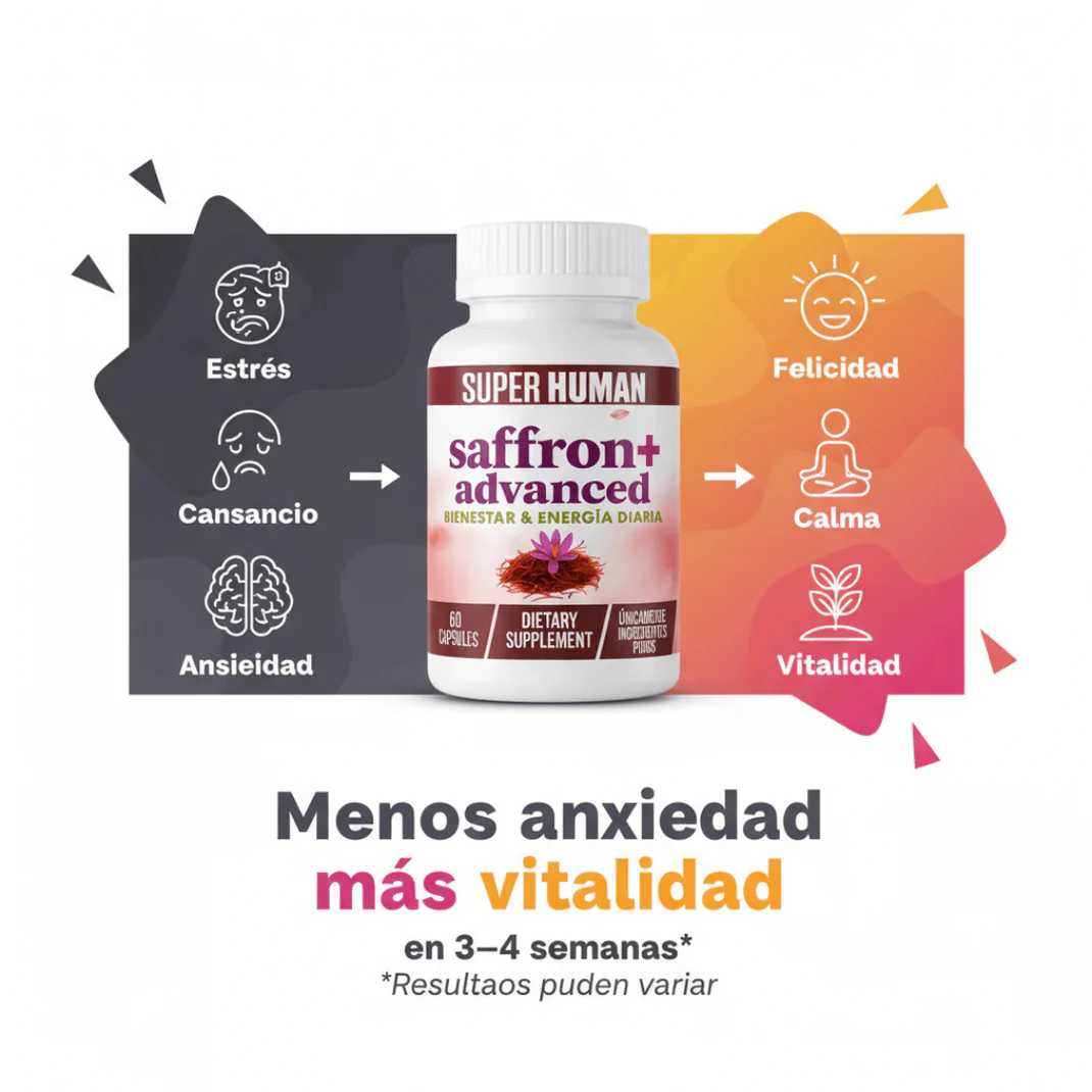 Saffron+ Advanced – Eleva el Ánimo y Reduce el Estrés (60 cápsulas) – SuperHuman™