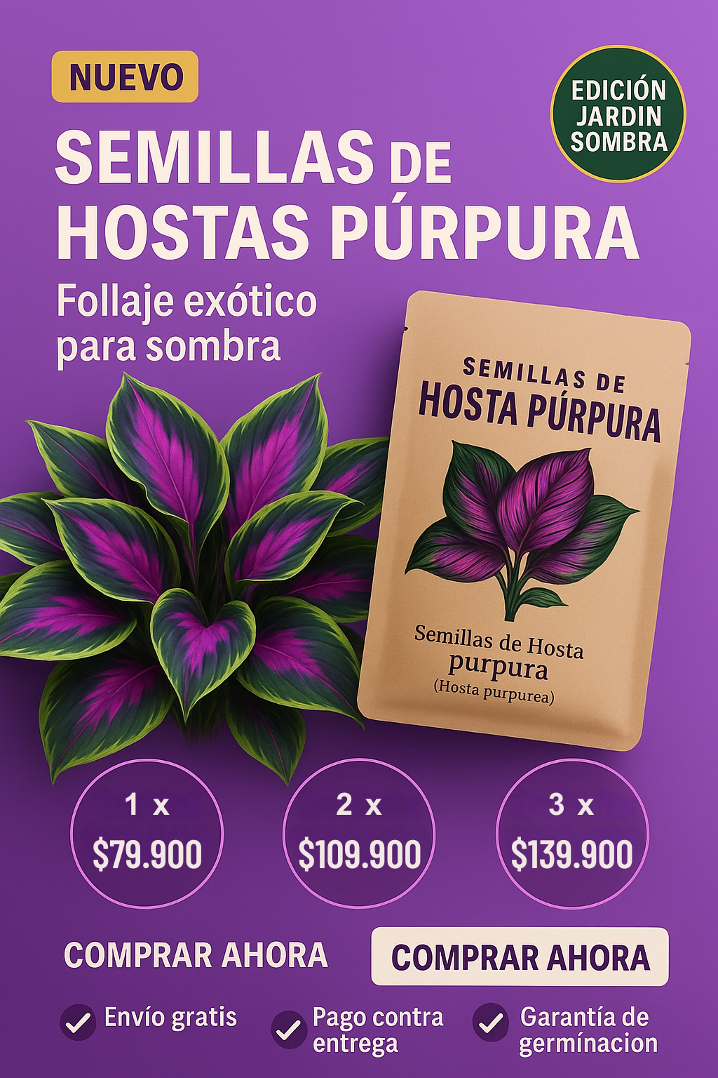 Haz tu pedido hoy y disfruta de la elegancia única de las Hostas Púrpuras.