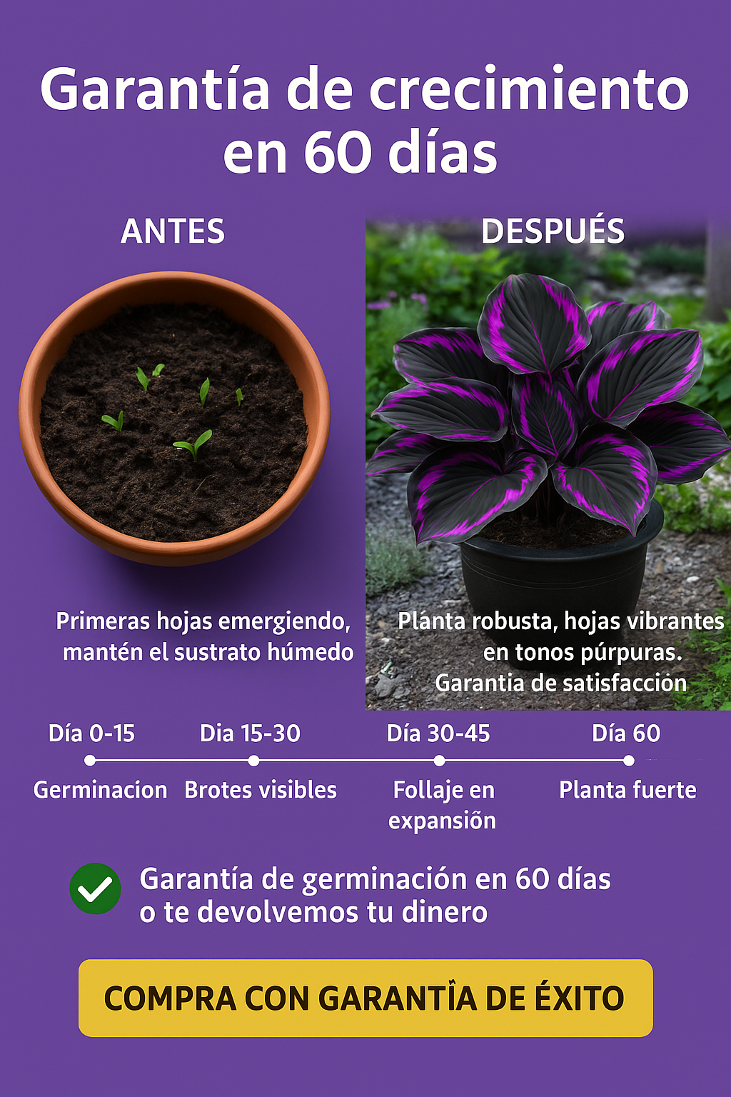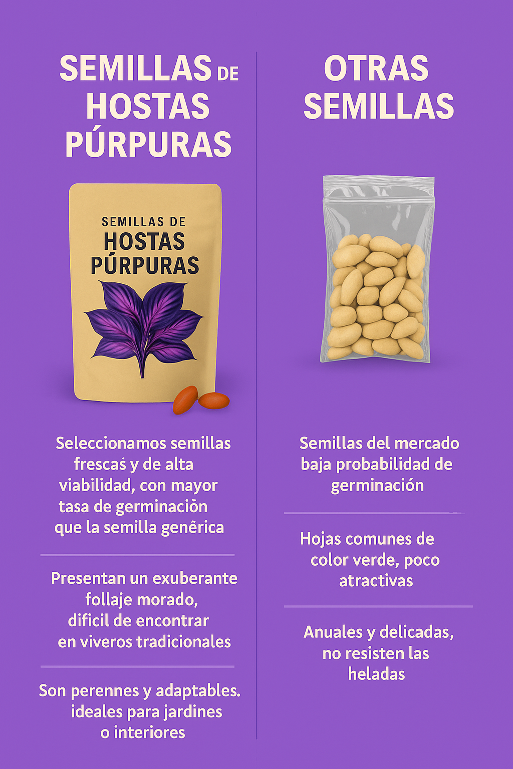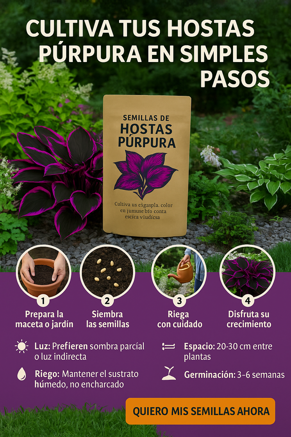 “Las hostas púrpuras germinaron rápido y ahora mi jardín luce elegante y único. ¡Colores fascinantes!”